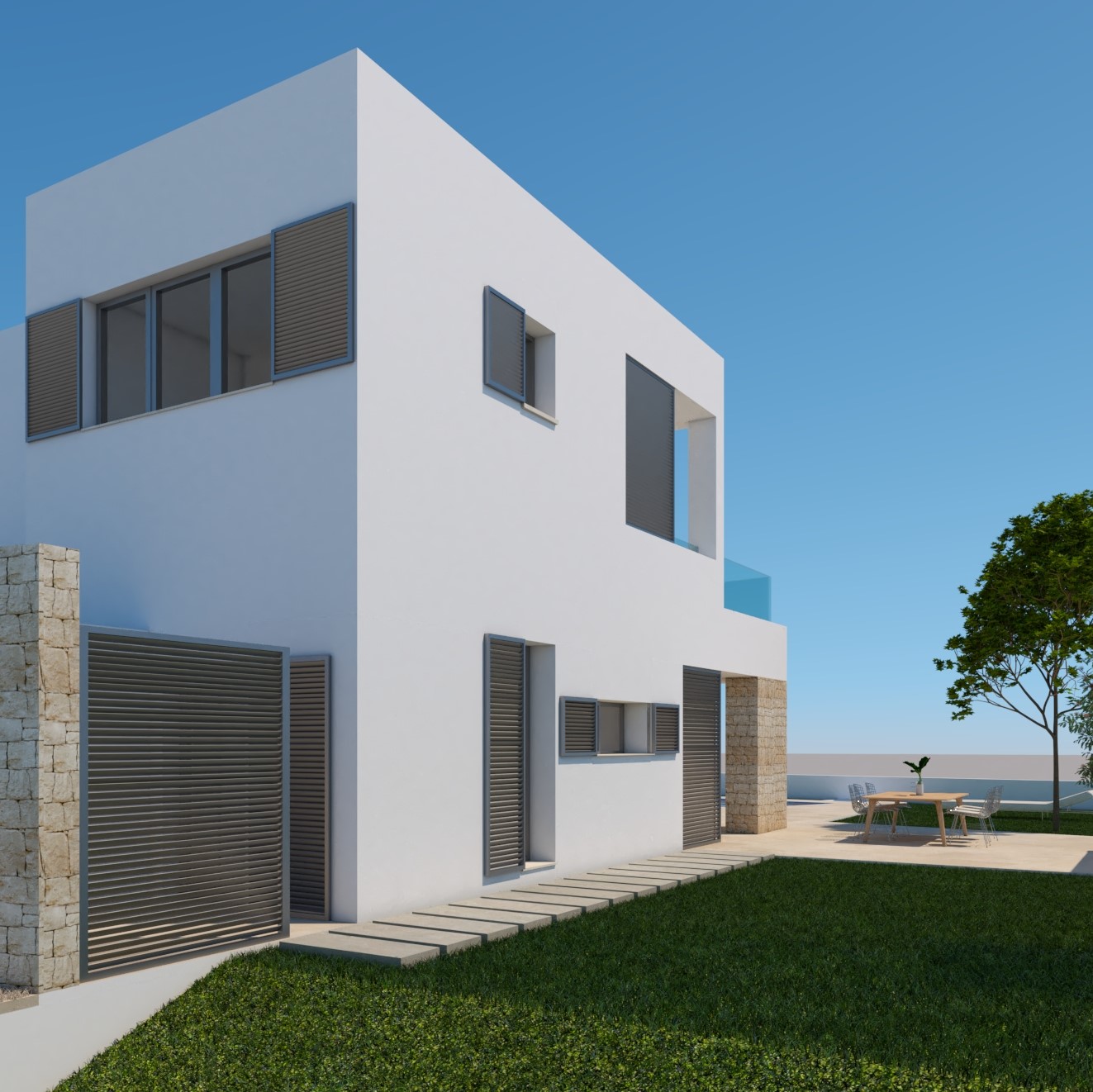 Casa para una pareja joven, donde se han implementado parámetros de sostenibilidad, como el estudio del soleamiento, la ventilación, los materiales, instalaciones y las carpinterías eficientes, para responder a una reducción real del consumo de energía.