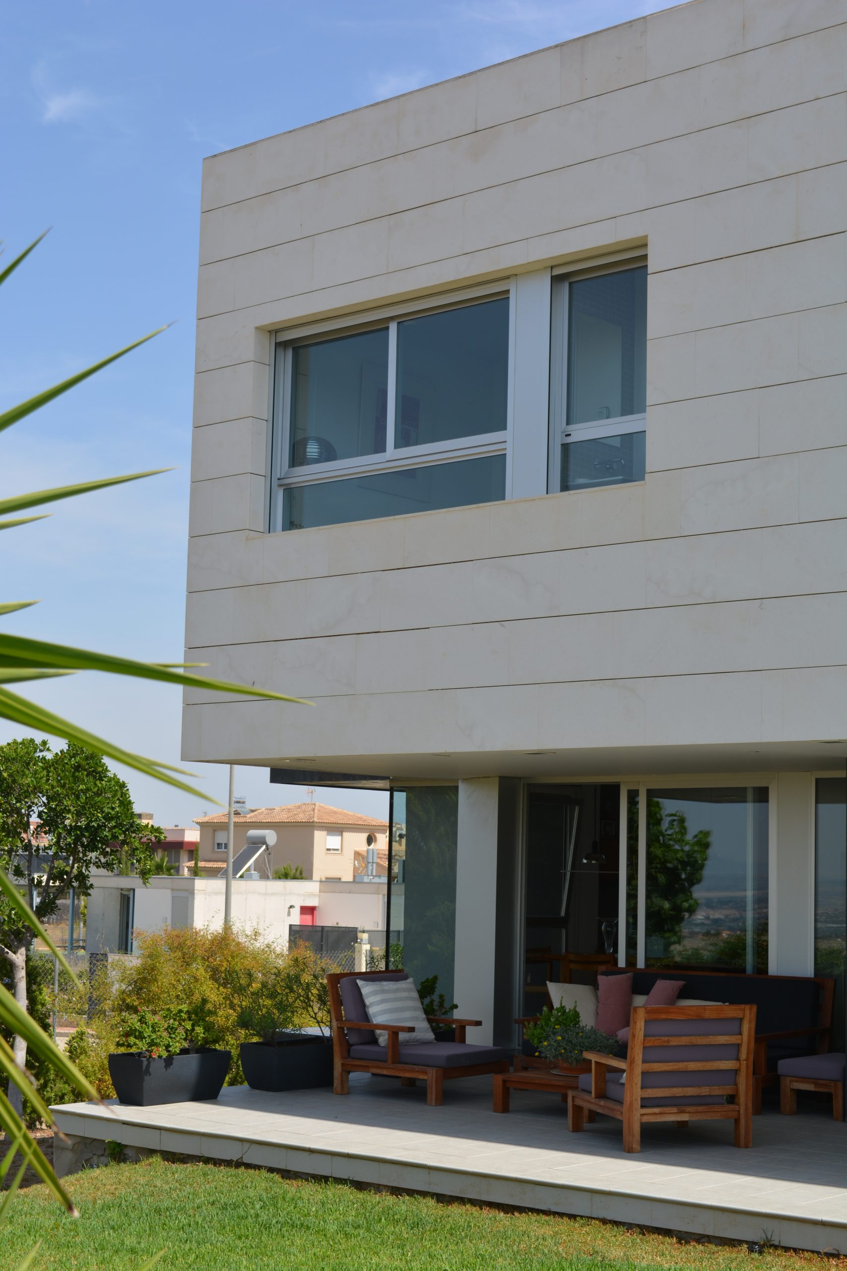 En lo alto de una urbanización de las afueras de Molina, la parcela elegida tenía muchas posibilidades, y un gran reto con el que lidiar, unas vistas espectaculares hacia el temido poniente murciano. La familia 2+2+2 estos últimos de cuatro patas, venia de vivir en una gran ciudad y querían una vivienda unifamiliar en la que habitar todo el año, donde disfrutar de espacio interior y relax exterior. Como pautas a seguir: una distribución práctica, cómoda y eficiente, rescatar la máxima superficie exterior para el jardín, integrar las vistas de poniente, climatización natural con ventilación cruzada en todas las dependencias aprovechando las corrientes térmicas de verano de la zona, y luz, mucha luz.