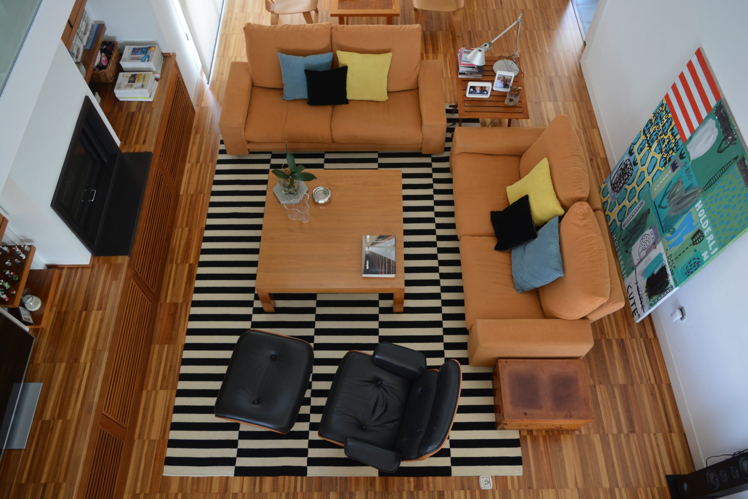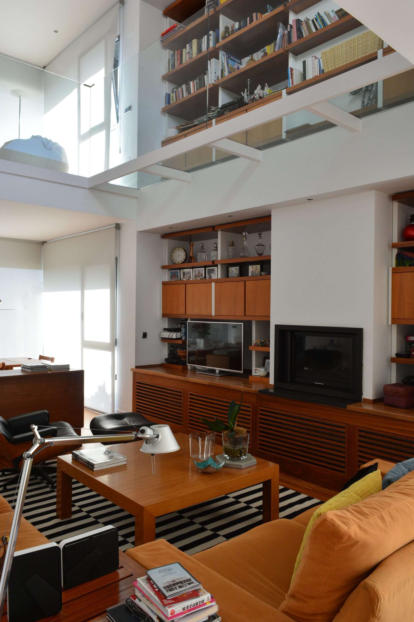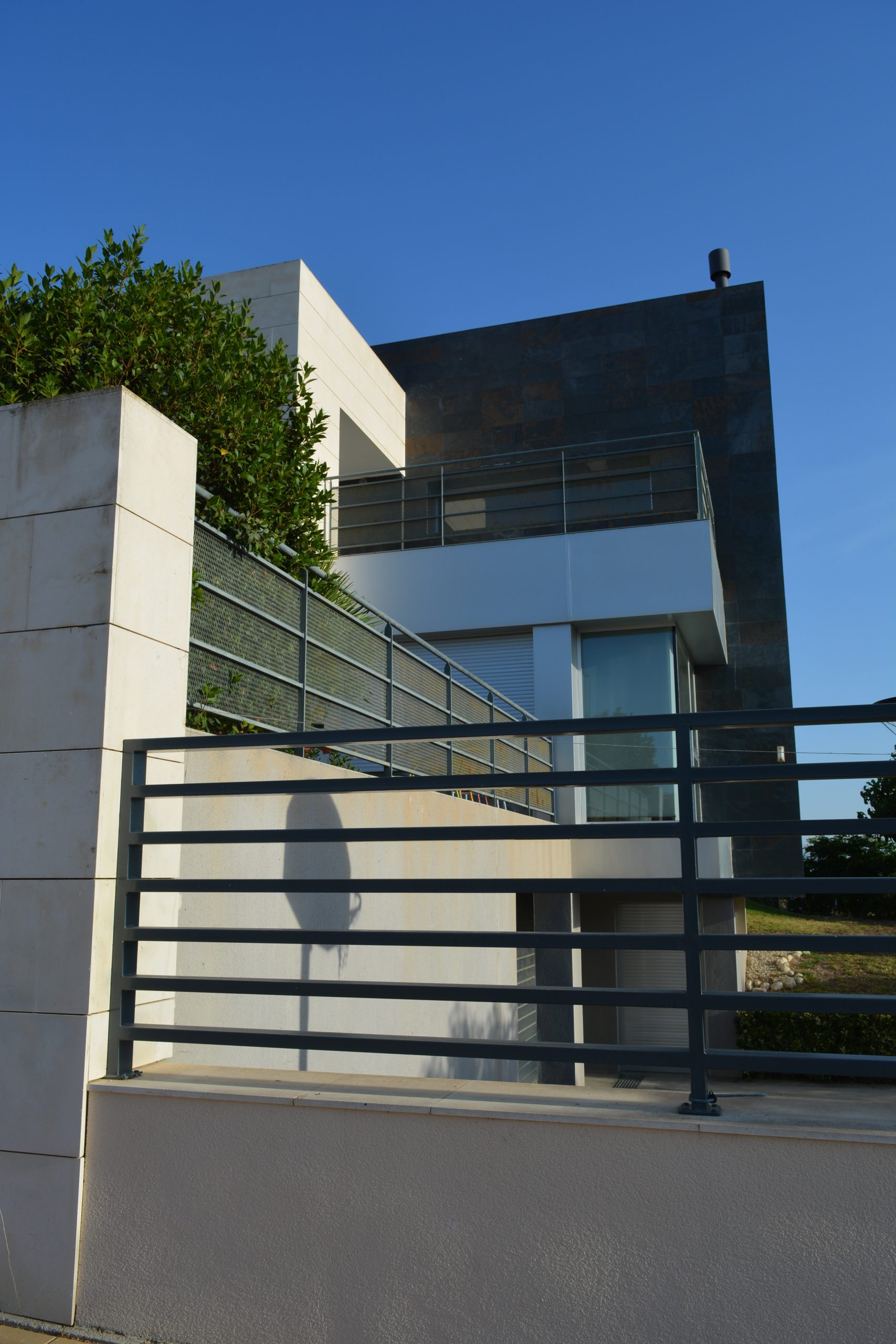 Aprovechando los desniveles del terreno se ideo una casa muy compacta en tres alturas que definen tres maneras de estar: zona de día, zona de noche y zona de servicios. El salón -el estar de invierno- y la escalera son el eje central de la vivienda, un gran rectángulo simétrico que se convierte en cubo en el exterior, con grandes ventanales en sus esquinas, orientado a oeste-norte (entrada) y oeste-sur(jardín), una gran pared-librería central con chimenea lo protege del poniente. Este espacio con doble altura a la que se incorpora la escalera, establece una conexión abierta con la zona de noche, funciona como un gran receptor de calor en invierno y una gran cámara para disipar el aire caliente en verano, dejando que las estancias de levante – cocina, sala de juegos, dormitorios- queden frescas y protegidas del poniente.